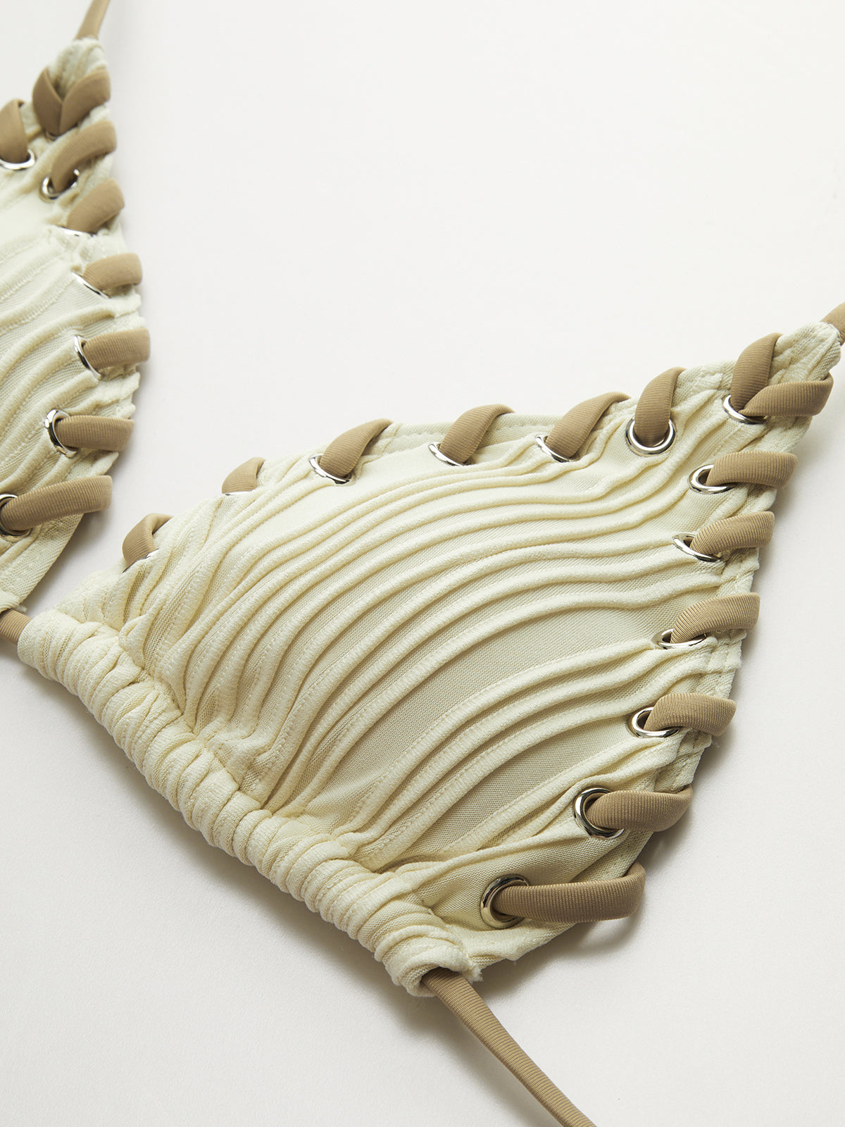 Grommet Lace-Up Ruched Bikini Set