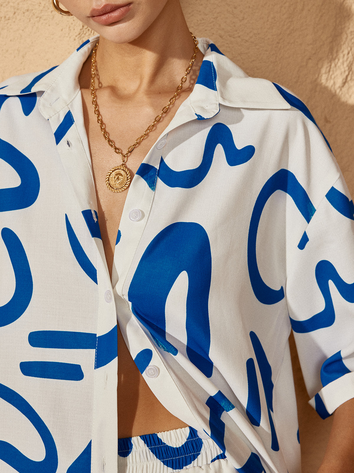Print Drawstring Shift Shorts Set